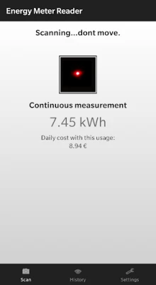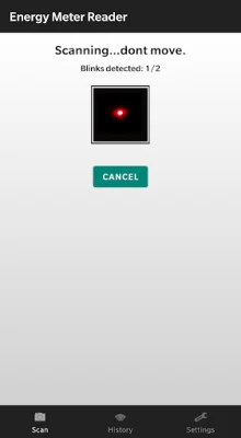 - navigate back to scan view and point the camera to the blinking light in front of the energy meter.
