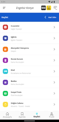 Vatandaşlarımızın, uygulamada tanımlı olan konumlara(engelli şarj istasyonu, taksi durağı, camii, turistik nokta vb.) erişebilmesini sağlayan menüdür. İstenildiği takdirde bu konumlara yol tarifi alabilmekte, konum ile ilgili geri bildirimde bulunabilmekte ve harita üzerinde görüntüleyebilmektedir. Ayrıca engellilerin erişimine uygun olan alanların (kafe, restoran, umumi WC, çocuk parkı vb.) sisteme tanımlanması ile engellinin engel durumu ve konumuna en yakın olandan uzağa doğru görüntüleyebilmektedir.