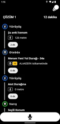 Vatandaşımızın mevcut konumu ve gitmek istediği konumu arasında toplu ulaşım kullanılarak oluşturulan alternatif rotalar gösterilmekte ve sesli ve görüntülü bir şekilde yolculuğa asistanlık yapmaktadır.