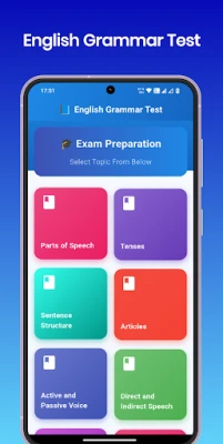 English Grammar Test is a MCQ-based English grammar practice app designed for learners, competitive exam candidates, and anyone looking to sharpen grammar skills through quizzes.