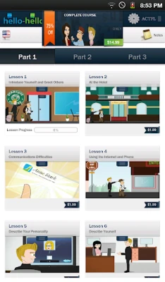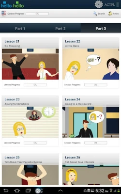 Hello-Hello English is a full-fledged language course with 30 LESSONS developed in collaboration with the American Council on the Teaching of Foreign Languages (ACTFL), so you can be assured that these lessons follow an effective research-based methodology. All lessons are conversational based on realistic dialogues and situations, rather than a collection of out-of-context words and phrases.