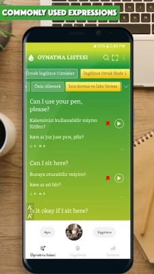 Uygulama, size günlük hayatta kullanılan binlerce yaygın cümleyi, her cümle için sesli olarak sağladı.