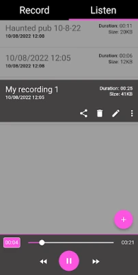 Bitirdikten sonra, ses kaydını durdurmak ve kaydetmek için onay düğmesine basın. "Dinle" sekmesine gidin, kaydınızı seçin ve oynat düğmesine basın. Sorularınız arasındaki boşlukları dikkatlice dinlemeniz gerekir. Burası duyacağınız yer ve yakaladığınız EVP'ler.
