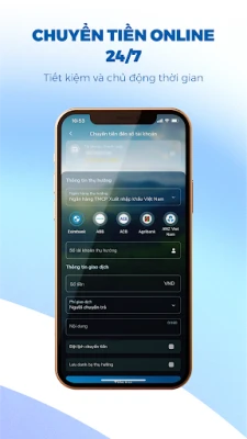 - Chuyển tiền nhanh chóng 24/7 nội bộ và liên ngân hàng;