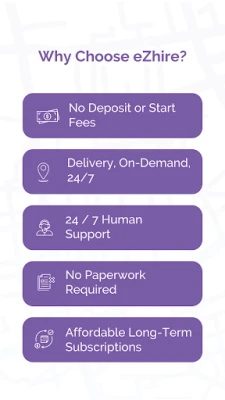 Welcome to eZhire - the future of car rentals! We've redefined the car rental experience by combining technology, convenience, and customer satisfaction to bring you a platform that lets you rent cars with ease, and without any hidden costs.