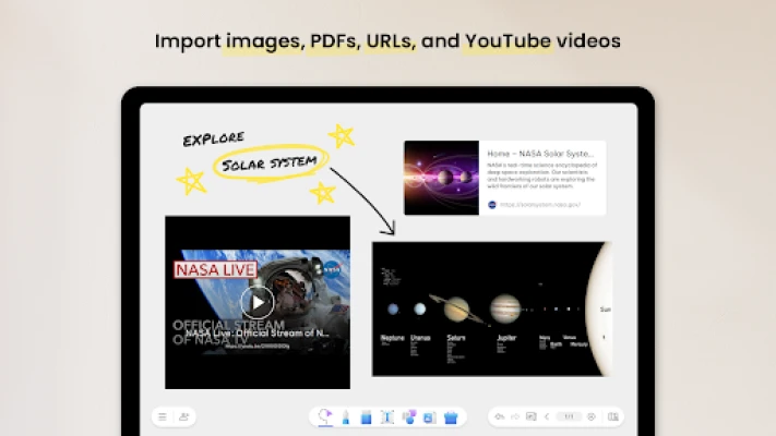 - Import images, PDFs, URLs, and YouTube videos