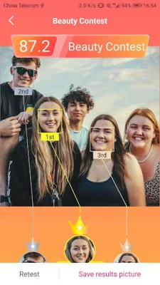 3.Beauty Contest function, based on artificial intelligence and big data, analyzes the face of you and your friends, evaluates and calculates the face beauty, and obtains the face beauty ranking.