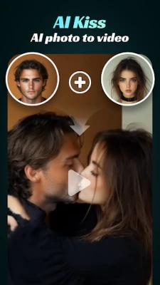 • Turn your selfies into touching AI Kiss videos using realistic face mapping and AI photo editing.