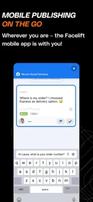 Your customers and fans don’t care for opening hours on social media. Engage with your audience regardless where you are. With the Facelift app you can moderate the social networks Facebook, Twitter, Instagram, LinkedIn, WhatsApp and Xing.