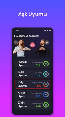 Evlilik & Analoji – Aşk Uyumu Siz ve partnerinizin yüz fotoğraflarının Ruh, Zihin, Kalp, Kendilik ve Burç uyum grafiklerinizle ne kadar uyumlu olduğunu öğrenin. Potansiyel bir partnerle uyumunuzu merak mı ediyorsunuz? FaceLord, yüz özelliklerinizi istediğiniz partnerle karşılaştırarak ilişkinizin görsel dinamikleri ve Ünlü Benzetmesi aşk uyumu hakkında benzersiz bir bakış açısı sunar.