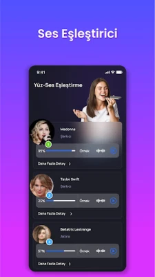 Yüz-Ses Eşleştirme Yüz tanıma ve ses analizlerini eşzamanlı olarak yaparak deneyiminizi yükseltin. Kimlere benzediğinizi ve sesinizle kimlerin uyumlu bir bağlantıya sahip olduğunu öğrenin. FaceLord, görsel ve işitsel unsurları birleştirerek kapsamlı bir benzerlik açıklaması sunar.