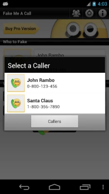 - Choose a fake caller from your contacts