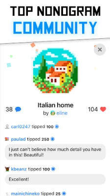 Discover beautifully crafted nonograms from elite creators and a thriving community. With truly unlimited play and daily additions, your puzzle collection never stops growing.