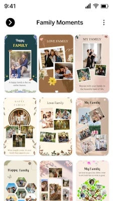 • Wedding family photos, family trips, family tree, family birthday celebration, love collages etc.