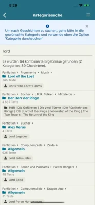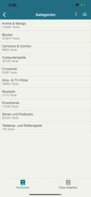 - Geschichten nach Fandoms/Kategorien suchen und lesen