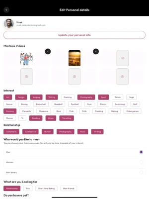 -> Meaningful Matches: Find people nearby who share your interests and lifestyle.
