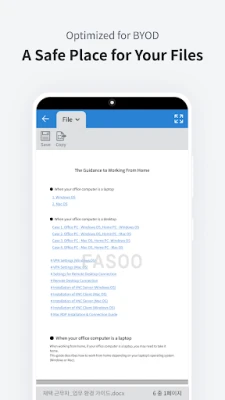*CAUTION: Fasoo View is allowed to be operated/used by users who install a certificate through FED-M prior to viewing files on their mobile device. Both encrypted documents and normal documents may not be accessed by unauthorized users. Fasoo View is not intended for personal users.