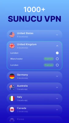 Secure VPN Proxy Master, dünya çapında stratejik olarak konumlandırılmış geniş bir sunucu ağı sunar. 30'dan fazla ülkeden bir proxy sunucusu seçerek coğrafi kısıtlamaları aşabilir, favori içeriğinize uzaktan erişebilir ve keyfini çıkarabilirsiniz.