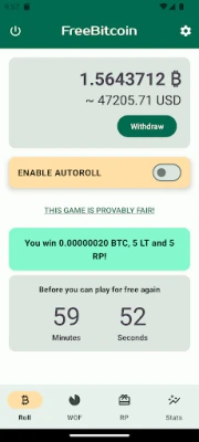 Free Bitcoin Every Hour: Our app serves as a convenient client for freebitco.in, offering you the opportunity to earn free Bitcoin every hour. Simply log in, complete the roll, and claim your rewards. It's a hassle-free way to accumulate Bitcoin!
