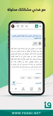 عندك سؤال محيرك؟ عندك مشكلة؟ محتاج استشارة؟ فدني مجتمع يساعدك في حل مشاكلك والإجابة عن أسئلتك فدني منصة اجتماعية تتيح للجميع طرح أسئلتهم ومشاكلهم والإجابة عن أسئلة ومشاكل الآخرين.تتميز فدني بمزايا فريدة مثل خاصية السؤال بالصوت وإخفاء الهوية ووجود عدد من المختصين الذين يسرهم مساعدتكاطرح سؤالك أو مشكلتك واستقبل إشعارا على هاتفك حين يتم الرد عليه مجاناسجل نفسك كمختص في مجالك وأجب عن أسئلة الآخرين وقم بالدعاية لنفسك في ذات الوقتيمكنك ربط حسابك في فدني بحساباتك في السوشيال ميديا أو موقعك الشخصي
