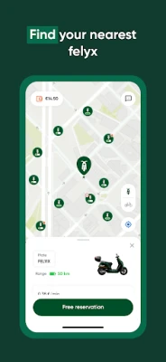 2. Spot & rent 🔍 Find the closest felyx e-moped in the app and book it with only one click