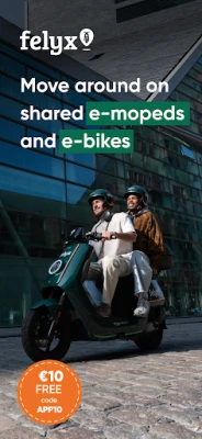 🆓€15 Free : Invite your friends to use felyx and receive €15 free for your next rides. You'll get a €3 discount on each of your next 5 rides just by sharing your personal code. To both enjoy this benefit, the person you invited must also take a ride on our e-mopeds, before you receive the same reward. You have 30 days to use it.