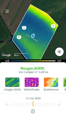 Scout gericht en speel in op veranderingen in de bodem en uw gewassen. Volg, vergelijk en verbeter uw teelt en bespaar op middelen. • Geen ingewikkelde installatie: Selecteer uw perceel op de kaart en volg direct het groeiproces. • Bekijk actuele bodem- en gewaskaarten van uw perceel, gebaseerd op satelliet– en dronemetingen. • Volg en vergelijk de ontwikkeling door de tijd. • Plaats notities en foto’s op de kaart. FieldScout biedt de volgende gekalibreerde kaarten: • Prestatieindexkaart • Hoogtekaart (AHN) • Biomassakaart • Bijgroeikaart • Stikstofindex kaart • Scoutingkaart • Bodemzonekaart • Taakkaarten (waaronder loofdoding en bemesten) Maak gebruik van gratis visualisaties en vul deze naar wens aan met betaalde kaarten.