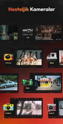 Fotoğraf çekmenin keyfinin ekipmanla sınırlı olmaması gerektiğine inanıyoruz. Bu yüzden her fotoğraf tutkunun vintage kameraların büyüsünü kolayca deneyimleyebilmesini sağladık. Uygulamada anında çekim kameraları, CCD dijital kameralar, tek kullanımlık kameralar, oyuncak kameralar, slayt projektörleri ve daha pek çok klasik model yer alıyor.