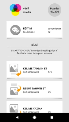 Bu ilgi çekici oyun, ilkokul düzeyinde kelime ve fonetiklerin kendi kendine çalışması için bir mobil öğretmen. Uygulama, en iyi öğretmenler zirvesinde yer alır ve bir yabancı dili daha hızlı konuşmanızı sağlar. Smart Teacher pratik işlevi çok kullanışlıdır, size bir sonraki dersin hangisi olduğunu söyleyecektir, yeni kelimeleri basit ve hızlı bir şekilde ezberlemenize yardımcı olacaktır.