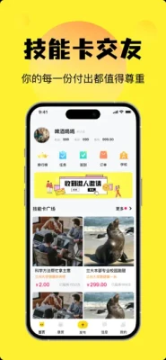 「技能卡」大学生用户可以创建自己的技能卡,通过投递交换或出售技能来实现自己的价值,同时也扩展校园交友范围。