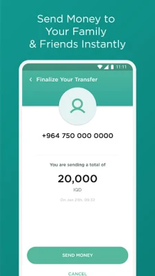 Deposit. Quickly and conveniently deposit your cash using a wide network of merchants all around Iraq. You can do this by simply showing your unique QR code to the merchant. The balance will be updated instantaneously.