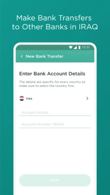 Money transfers. Perform Peer-to-Peer money transfers to other First Iraq Bank account holders. They will get the money within seconds! First Iraqi Bank also allows you to make local and international transfers to other banks.