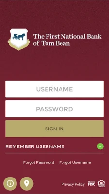 Contact Us You can contact us at 903-546-6275 if you have any questions about The First National Bank of Tom Bean’s Mobile App or the self-service registration process.