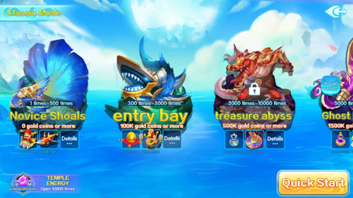 The game is not only gorgeous in pictures and cool in special effects, but also adds Xianxia elements on the basis of traditional fish shooting arcade gameplay. All kinds of sea kings are waiting for you to catch fish in the fishing ground! There are also classic arcade gameplay waiting for you to challenge, see who is the king of fish shooting in the arcade room! In addition, the game scenes are rich, including: Treasure Abyss, Nether Blue Cave, Lava Canyon, Ice and Fire Dragon Cave, Energy Temple and many other games, each game is matched with unique gameplay and special rewards.