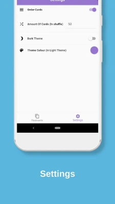 The app has features including: -Flashcards can be modified/edited -Extra flashcards can be created -Themes: A dark/light toggle and an accent colour choice. -A simple clean material interface