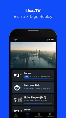 - 180+ TV-Sender davon 100+ in HD-Qualität - Replay 7 Tage - Aufnahme 200 Stunden - bis zu 5 Geräte gleichzeitig nutzen - Verfügbar für: iPhone, iPad, Apple TV und Webbrowser