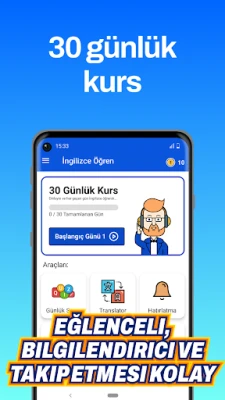 Bu dil kursu, ücretsiz 30 günlük bir İngilizce öğrenme kursu sunmaktadır.