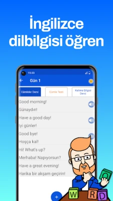 Tam İngilizce Kursu %100 Tavsiye Edilir! Ayrıca, 2000'den fazla en çok kullanılan İngilizce kelimeyi, çevirilerini, doğru telaffuzlarını ve iki kullanım örnek cümlesini içeren Günlük Bölümü ekledik.