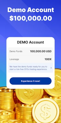 - All investors can access the demo account with $100,000 virtual funds for free to help investors become familiar with trading rules and techniques faster. Investors can access it without sign-up, download the APP now and start to practice trading immediately.