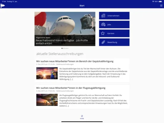Ob Unternehmensnews, Branchenthemen aus der Luftfahrt und Flugzeug- und Gepäckabfertigung oder Jobs im Ground Handling. Die App stellt alle Informationen bereit und verlinkt auf weitere digitale Angebote.