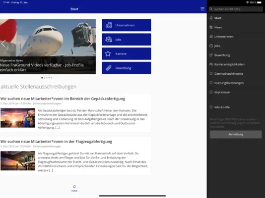 Das erwartet Sie: • Unternehmensneuigkeiten • Branchennews aus der Luftfahrt und Bodenabfertigung • Karriere im Ground Handling (offene Stellen) • Informations- und Kommunikationstool für Beschäftigte – im Login-Bereich