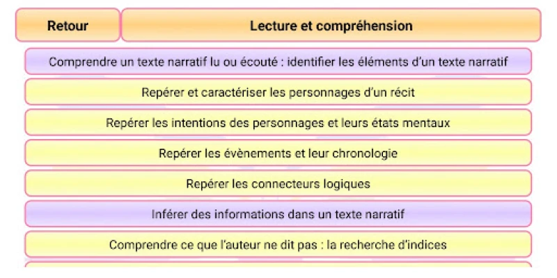 • Comprendre un texte narratif lu ou écouté : identifier les éléments d’un texte narratif