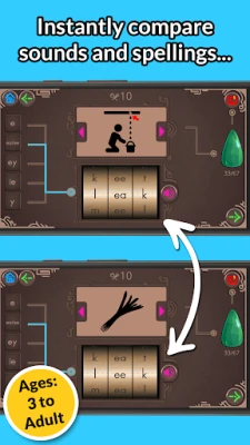 Her seviyenin “Keşfetme Modu” nda, farklı harf kombinasyonları yaparak fonik, yazım ve telaffuz kurallarını KEŞFEDİN. Kelimelerin gerçek telaffuzunu öğrenir,çevirilerdense simgeleri sayesinde anlamlarını öğrenir ve kelime dağarcığınızı genişletebilirsiniz.