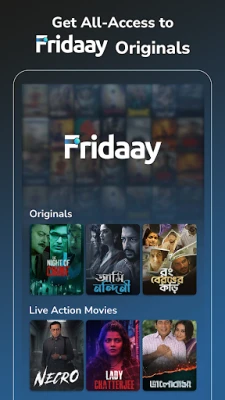 Fridaay is a OTT platform where members can watch Movies, Web Series, Short films and other offers on any internet-connected device online or can download to watch it later.