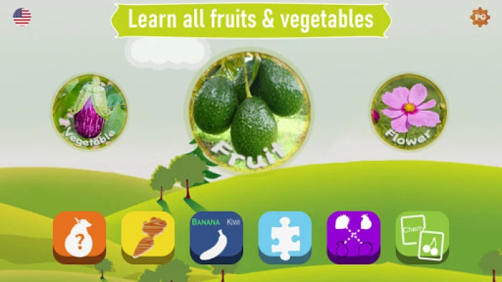 ** Fruits : You can learn 31 fruits with high quality image and their names. For example: Apple, Grapes, Mango, Watermelon, Banana,...