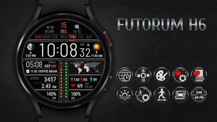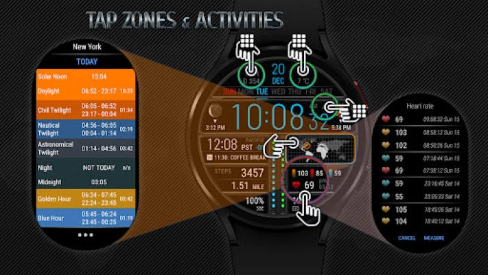 • This watch face independently measures your heart rate. This watch face does not receive data from stock Wear OS heart rate apps.