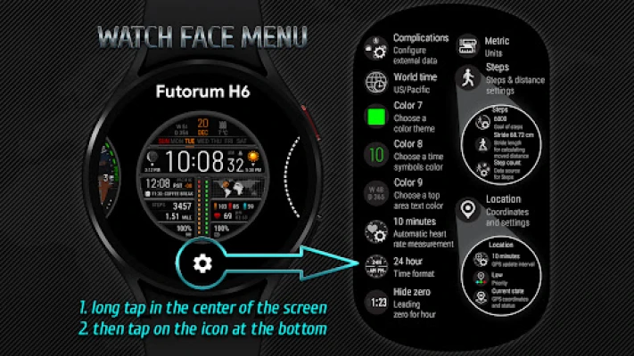 • After installing the watch face, you need to install application shortcuts and complications widgets as you wish.