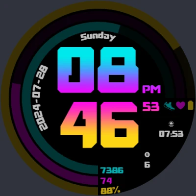 - 2 customizable complication slots - Digital time display - 12H/24H time formats respecting smartphone time format settings - Charging / low battery indicator - Efficient Always On Display - Compatible with almost all Wear OS smartwatches