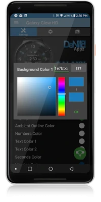 ✔ Color picker to select any color you like for the background, clock hands, text, & numbers