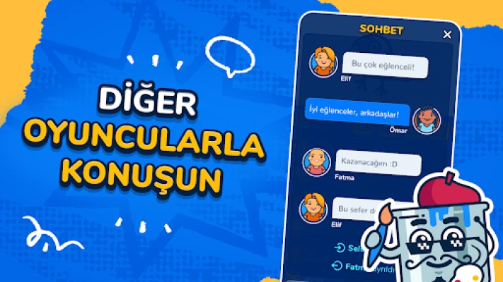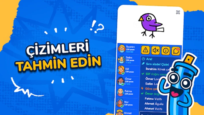 Çizmek için kelimelerden birini seçin ve oyun başlasın! Puan hedefine ilk ulaşan oyuncu en üst sırada yer alır.